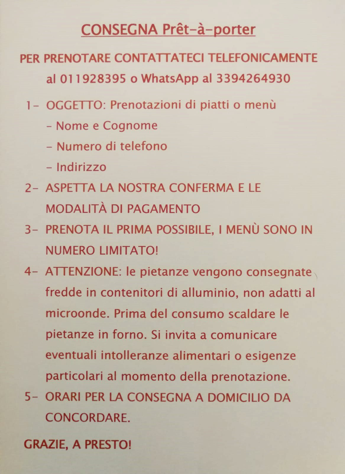 Abbiamo pensato di proporre, oltre al servizio servito ai tavoli del locale, un nuovo servizio: PIATTI VOLANTI piatti da asporto o CONSEGNA A DOMICILIO .
